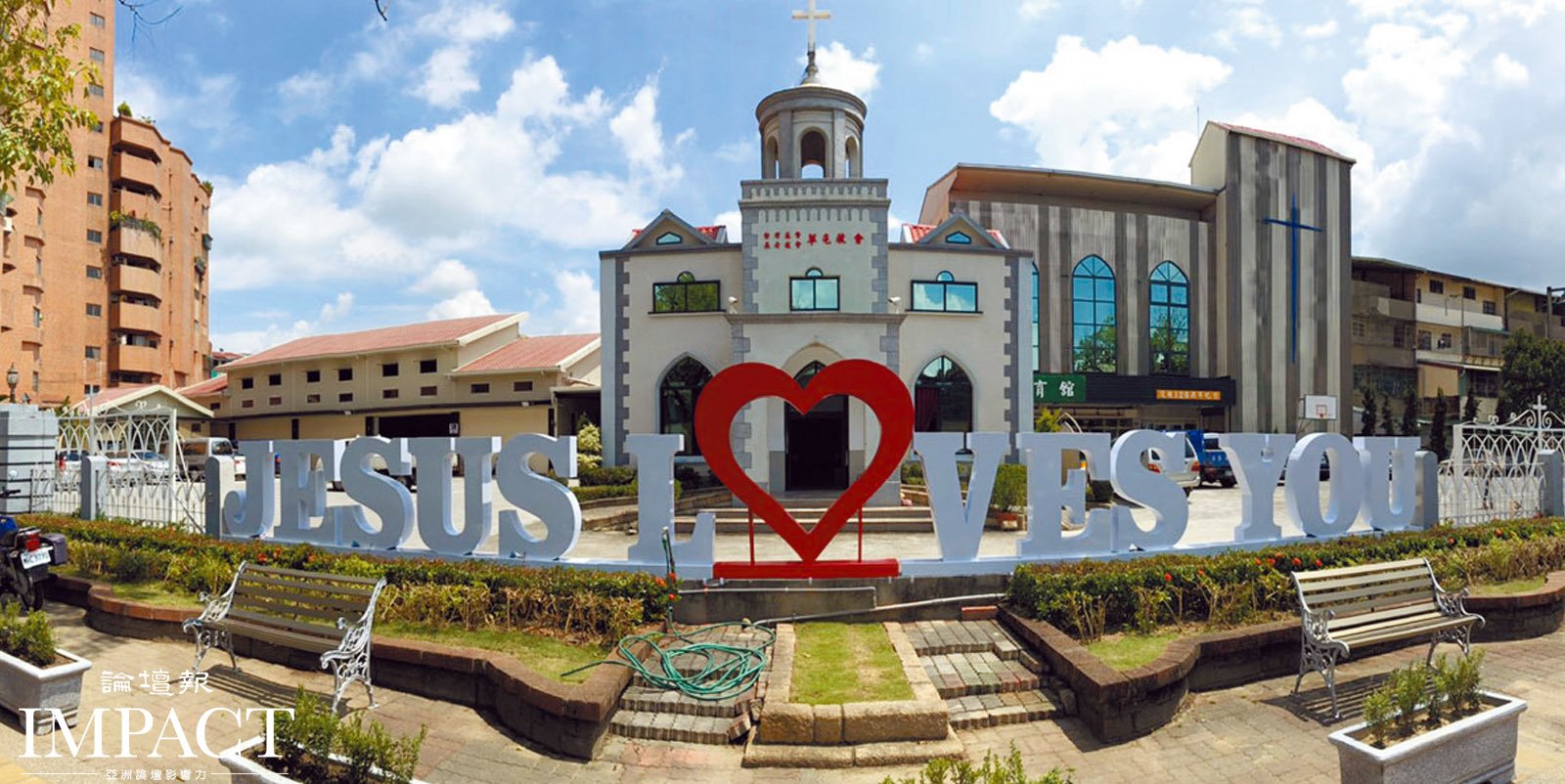 草屯教會外面「Jesus loves you」成為民眾拍照打卡景點。