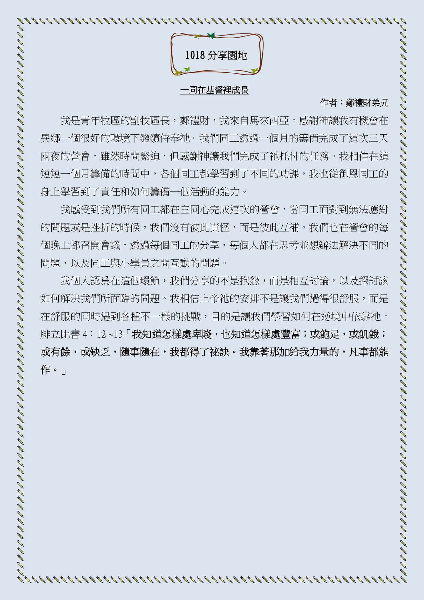 一同在基督裡成長