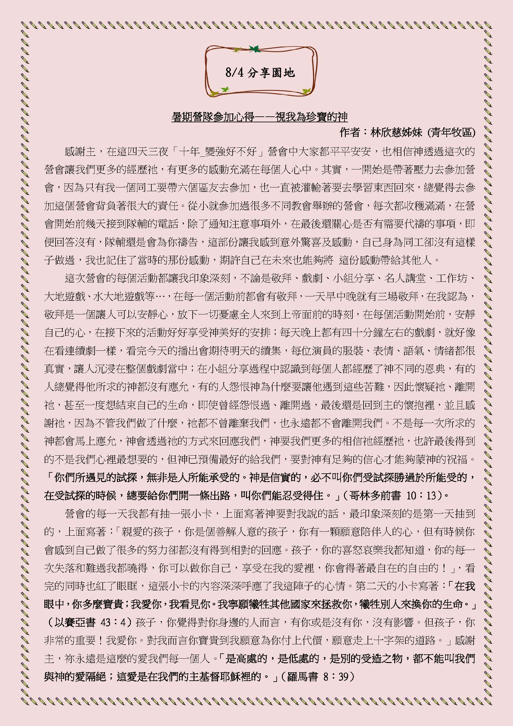 暑期營隊參加心得 — 視我為珍寶的神