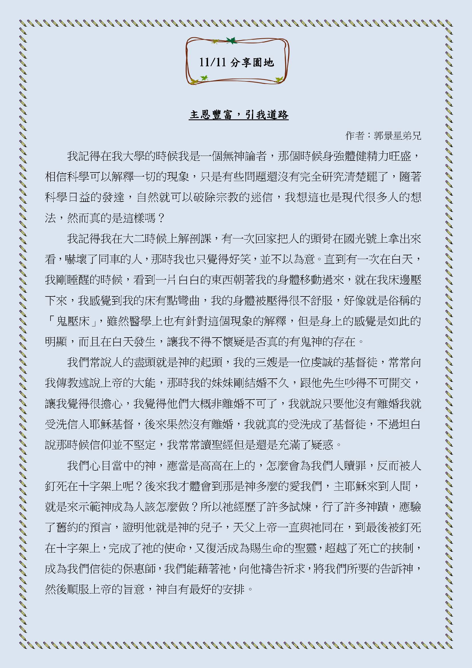 主恩豐富,引我道路