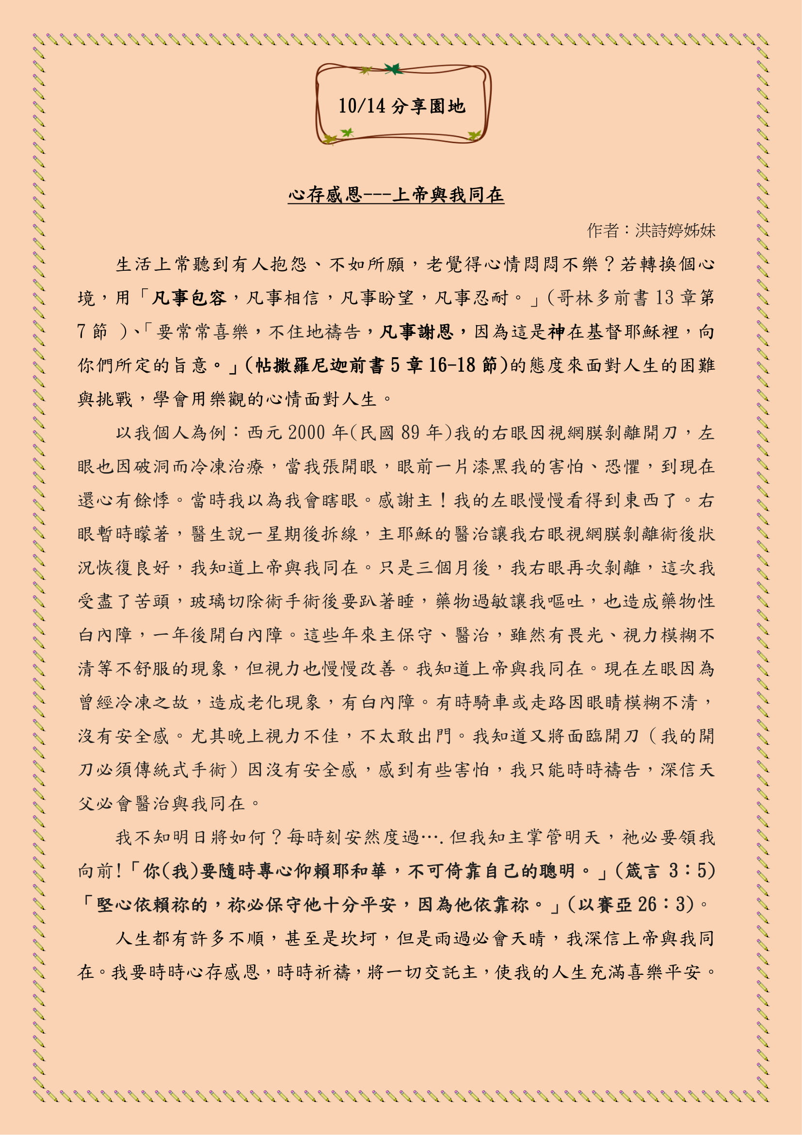 心存感恩 — 上帝與我同在